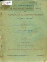 IDENTIFICATION OF PROFESSIONAL TRAINING NEEDS OF AGRICULTURAL EXTENSIONS AGENTS IN WESTERN NIGERIA